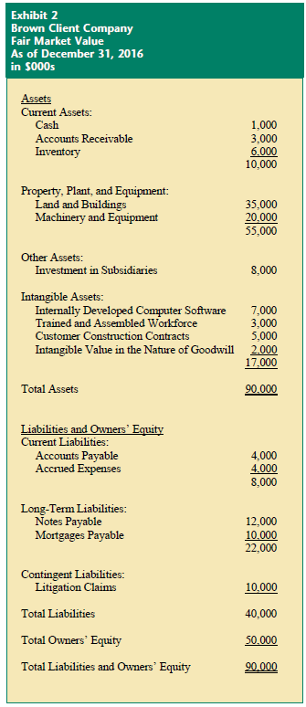 The Brown GAAP-basis balance sheet for December 31, 2016, is presented on Exhibit 1. All financial data are presented in $000s.