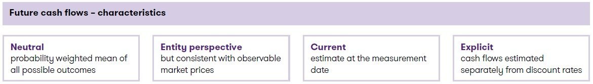- Transaction-based taxes and levies (such as premium taxes) Estimates of future cash flows