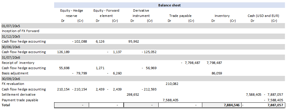 Balance sheet – summary hedge accounting entries Hedge of forecast foreign currency purchases – conclusion