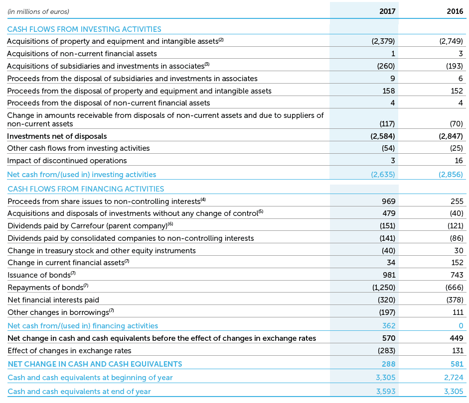 Carrefour Consolidated financing and investing cash flows 2017Group Reporting Entity Legal Entity
