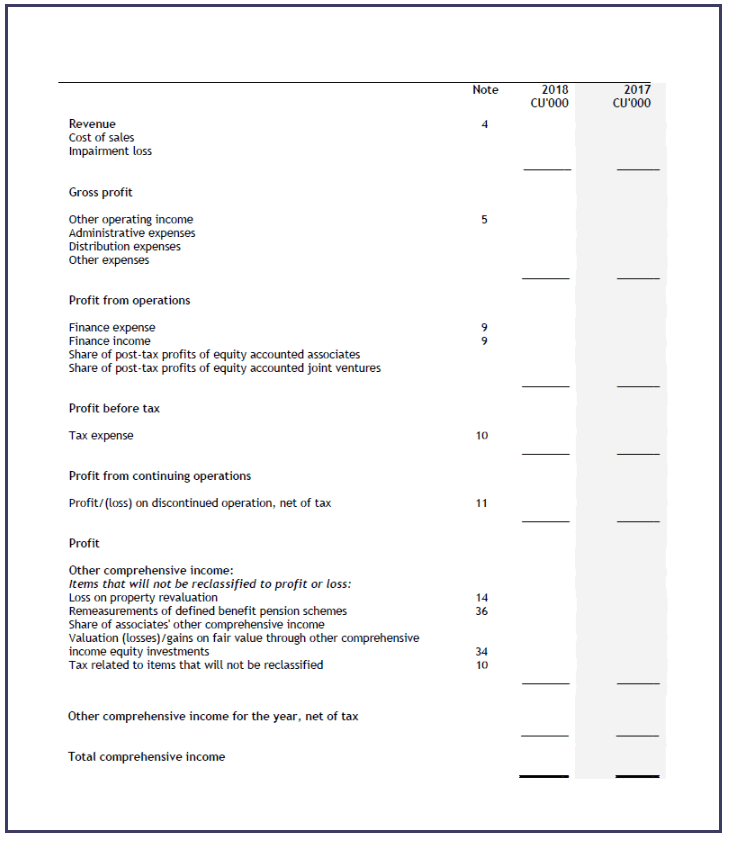Consolidated Statement of Profit or Loss IFRS Example Financial Statements 2018