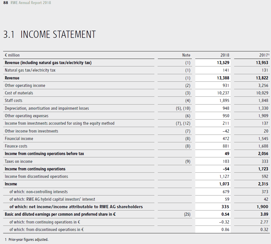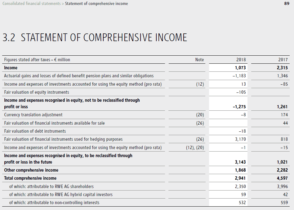 RWE Statement of comprehensive income 2018Group Reporting Entity Legal Entity