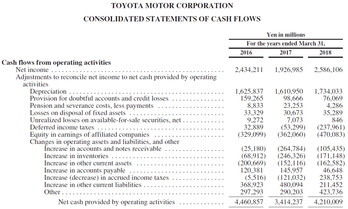 Toyota Consolidated Cash flows from Operating activities 2018