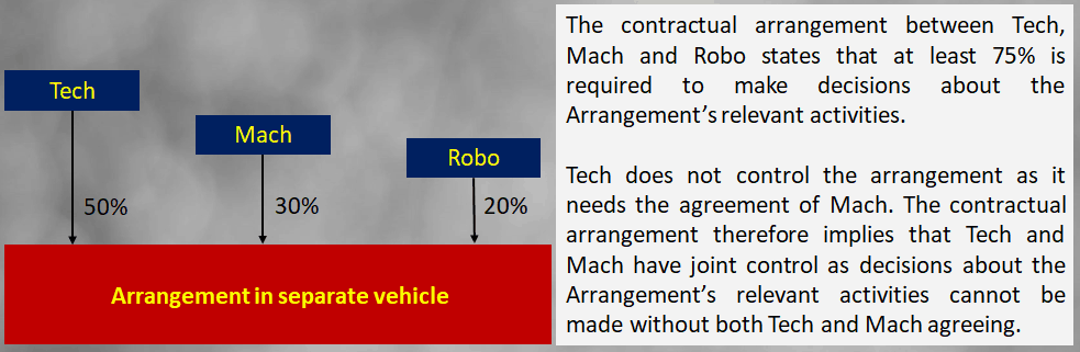 Sometimes the decision-making process that is agreed upon by the parties in their contractual arrangement implicitly leads to joint control. In other circumstances, the contractual arrangement requires a minimum proportion of the voting rights to make decisions about the relevant activities, as such this will not lead to joint control in a frequent manner.