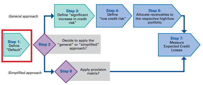 You have to do it, there is no definition of ‘Default’ in IFRS. That provides entities the room to tailor the definition to their internal credit risk management practices and consider qualitative indicators of default in addition to days past due. Step 1 Define Default – Impairment of investments and loans