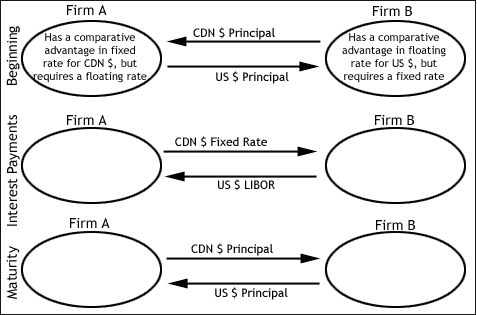 For example, if Firm B, a Canada-based company, is looking to acquire US dollars and Firm B, a US-based company, is looking to acquire Canadian dollars these companies could perform a swap.